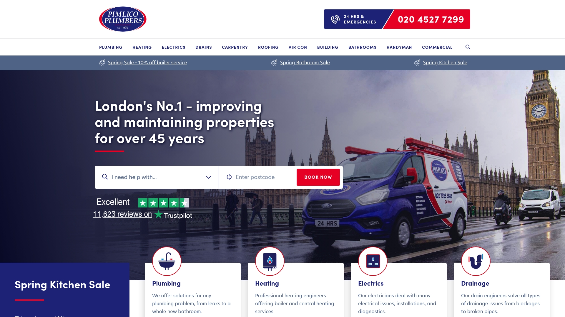 Pimlico Plumbers is a London based property maintenance company with over 45 years of experience offering a broad range of services and 24/7 emergency response. Their strengths are fast attendance, transparent quotes, and a reputation built across London and surrounding boroughs.