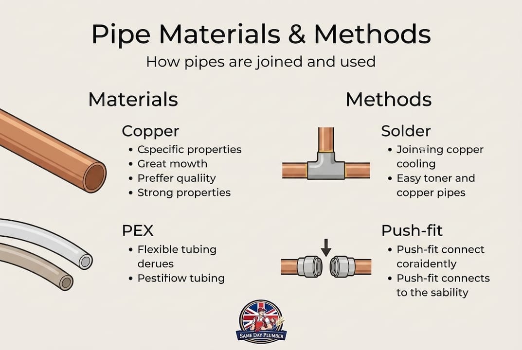 | Pipe material | Typical use | Joining method | Key characteristic |
